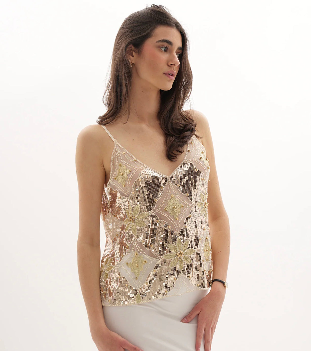 Alicia, Embellished Top - Gold