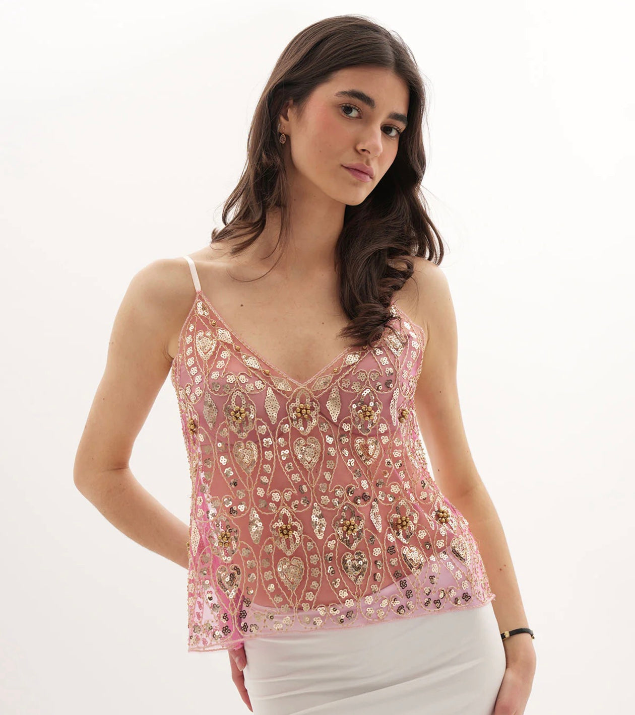 Handmade with care, the Juliette Embellished Top combines timeless elegance with a modern edge. Covered in soft beads and delicate sequins forming a floral pattern, this top catches the light beautifully with every move.